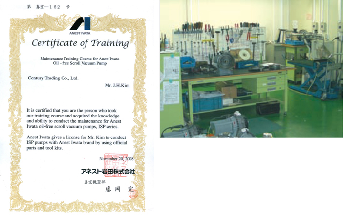 진공펌프는 고속의 회전체로 운전시간 기준 매8,000 시간마다 소모품을 교환해야 주요부품을 보호할 수 있습니다. 국내 판매된 제품에 대하여 당사는 제품고유의 시리얼 번호를 관리하여 상시 대기중인 전문 인력을 통한 철저한 메인터넌스 관리를 실시하고 있습니다.